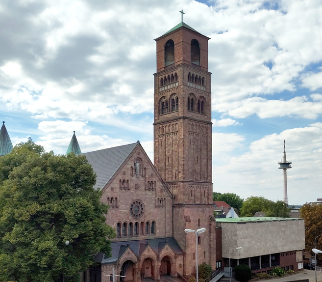 Die Evangelische Erlöserkirche Holsterhausen in Essen ist ein markantes Beispiel neoromanischer Architektur, entworfen von Franz von Schwechten, dem Hofarchitekten Kaiser Wilhelms II. Errichtet zwischen 1905 und 1909, diente sie als zentraler Punkt des neu entstehenden Südviertels. Der imposante Glockenturm, der an einen italienischen Campanile erinnert, ist weithin sichtbar und prägt das Stadtbild. Nach der Zerstörung im Zweiten Weltkrieg wurde die Kirche in den 1950er Jahren unter der Leitung des Pädagogen und „Handwerksphilosophen“ Hugo Kükelhaus mit viel Bedacht neu gestaltet. Diese Neugestaltung berücksichtigt selbst kleinste Details und verleiht dem Innenraum eine besondere Atmosphäre. Die Kirche ist ein beliebter Veranstaltungsort für Chöre wie den „Essener Bachchor“ und „gospel&more“ sowie für externe Kulturschaffende. Ein virtueller Rundgang auf der Webseite ermöglicht es, die Kirche auch außerhalb der Öffnungszeiten zu erkunden.
